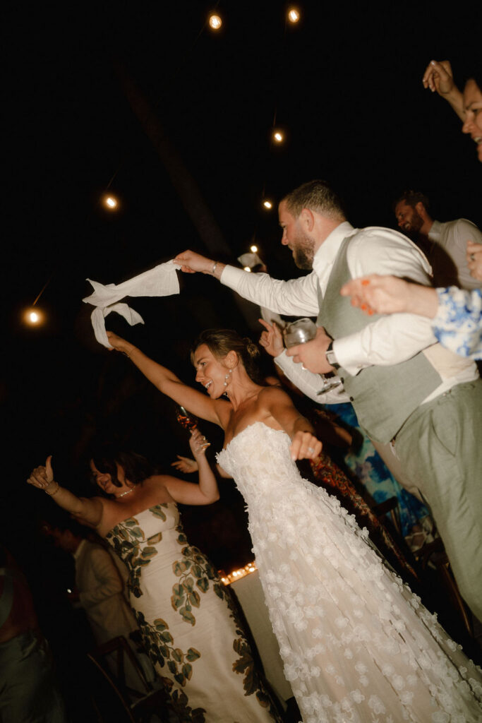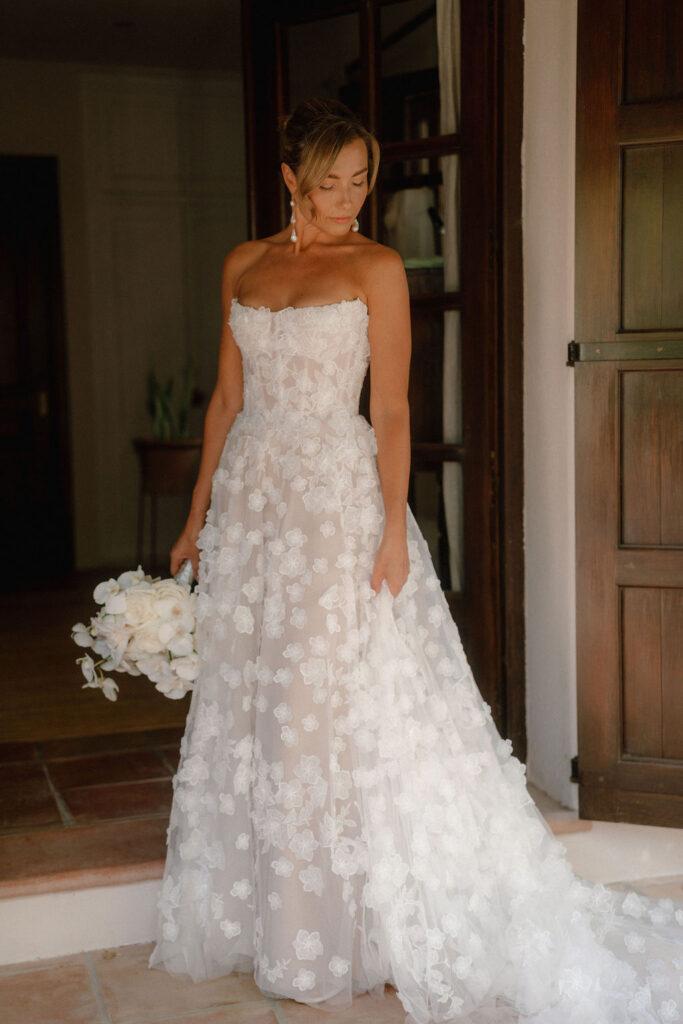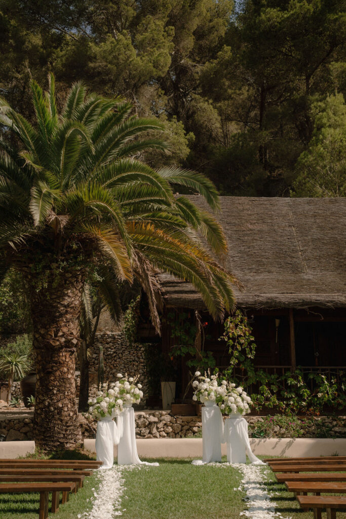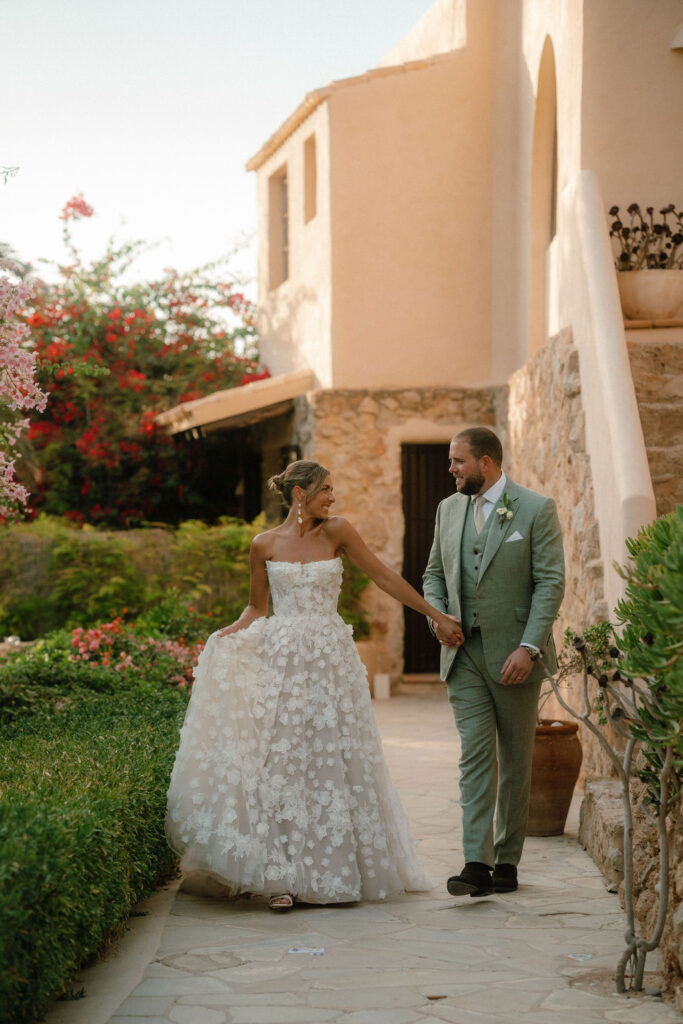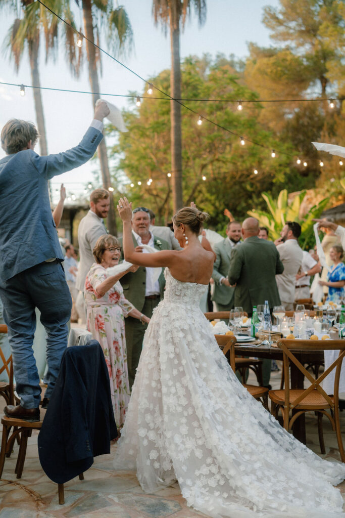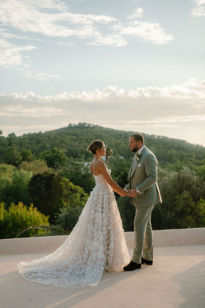 Se trató de una celebración de tres días: un aperitivo de bienvenida al atardecer el viernes; la boda el sábado, con ceremonia en el jardín, cóctel al atardecer en la terraza, cena junto a la piscina y una animada fiesta en el club; y un domingo más relajado con una paella de recuperación junto a la piscina.
